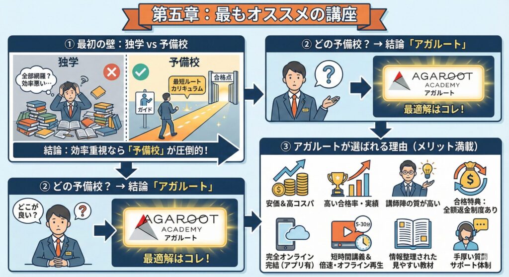 結論、アガルートが最適な講座です。