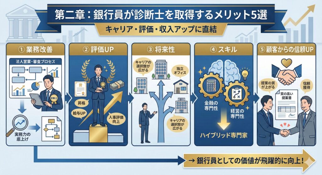 【銀行員向け】中小企業診断士を取得するメリット5選|キャリア・評価・収入アップに直結
