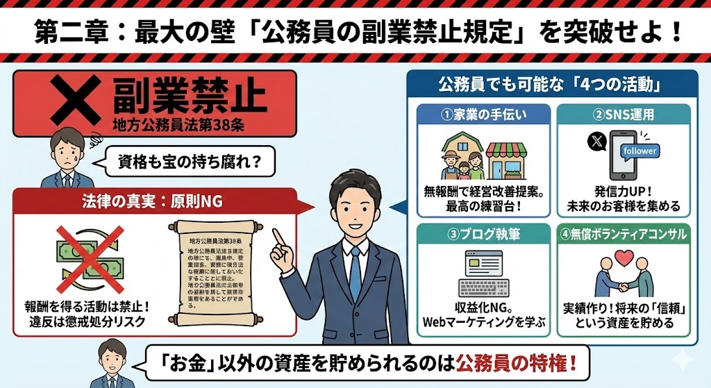 ここでは、あやふやな噂ではなく、「法律の真実」と「公務員でも堂々とできる活動」について解説します。