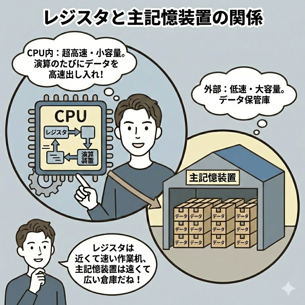 CPUでデータの演算を行う際には、データを一時的に置いておく場所が必要です。