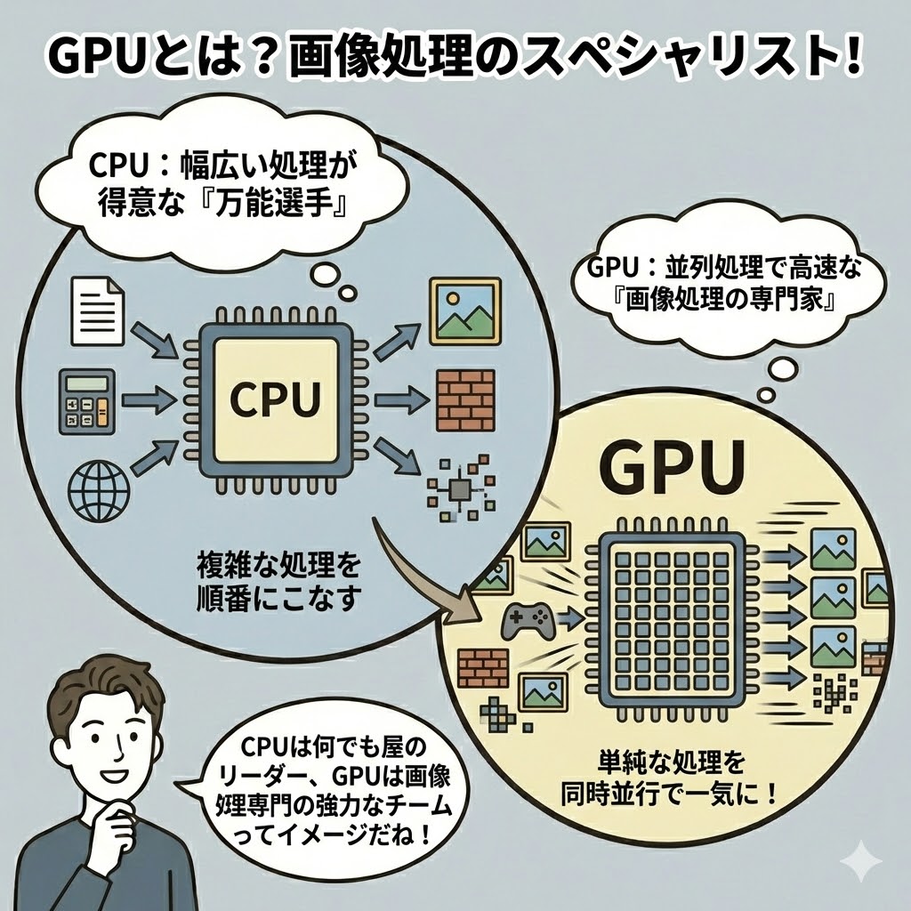 CPUとは、目的・処理の対象・スピードに違いがある。