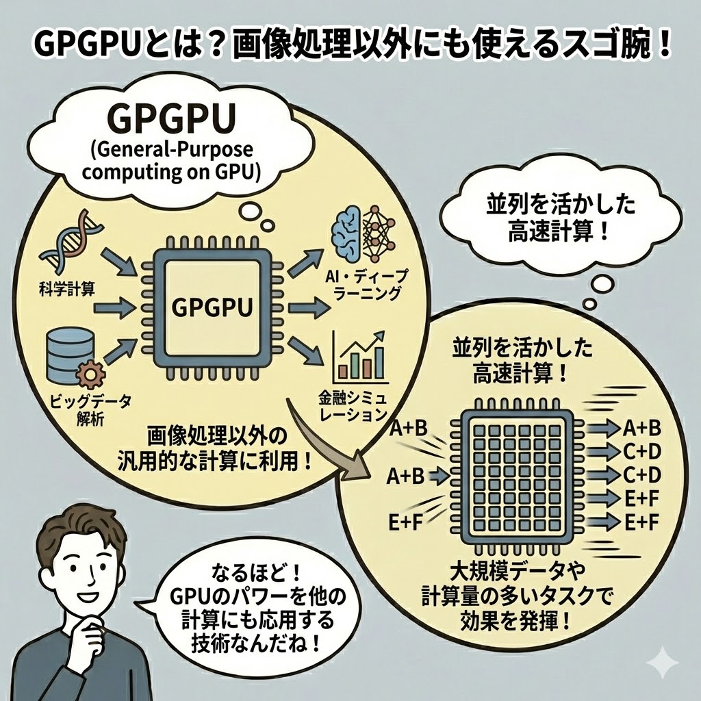 GPUを画像処理以外の汎用的な計算に利用する技術のこと。