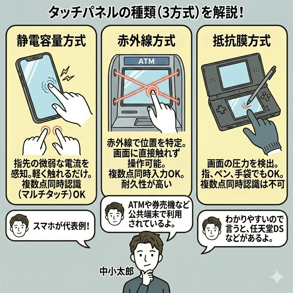 タッチパネルには次の3種類がある。