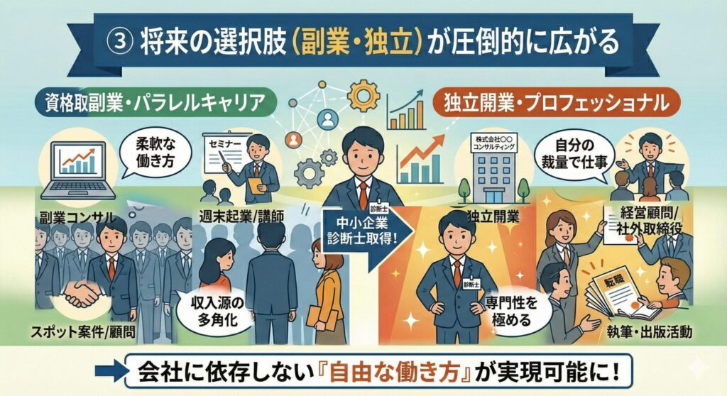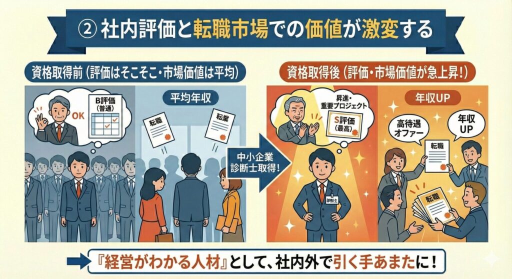 診断士を取得すれば、社内評価・転職市場での価値が爆増します。