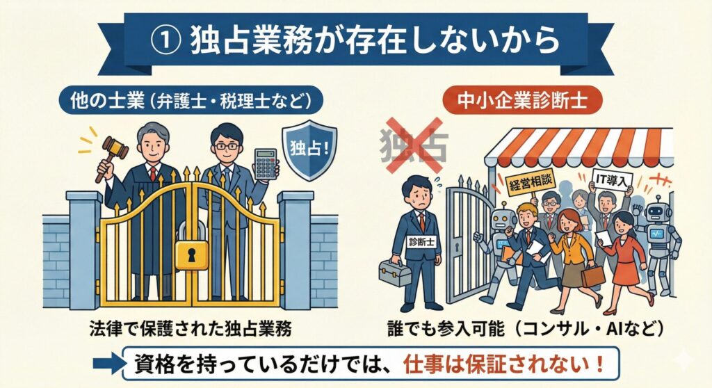 弁護士・税理士などのように法律で業務が守られているわけではないんだ。