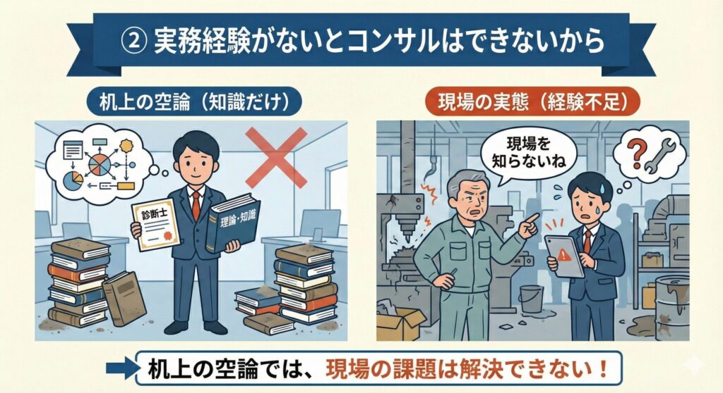 2つ目の理由は「実務経験がないとコンサルタントはできないから」です。