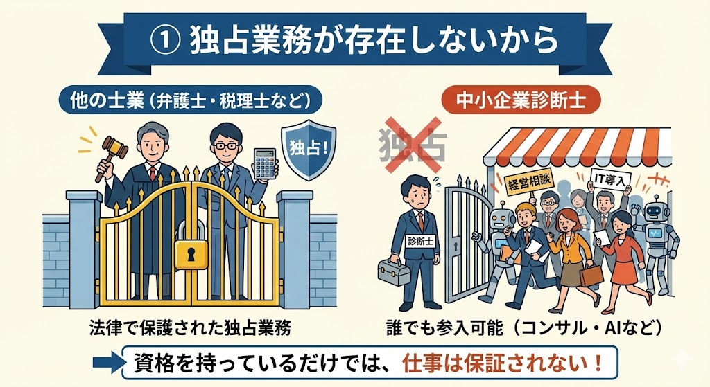 診断士は独占業務がないからこそ、実務で役に立つ知識を身につけることが大切なのです。