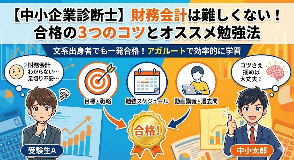 今回は「【中小企業診断士】財務会計は難しくない!合格の3つのコツとオススメ勉強法」について解説しました。